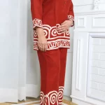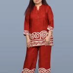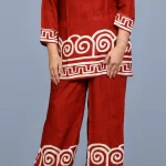 (20% OFF)Rust red Co-ord set with bold contrast border detailing on Kurta and Pants