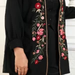 Black 3 piece Co-ord set with floral hand embroidery