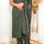 Bottle Green straight Kurta Set with matching dupatta and Pants