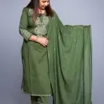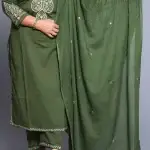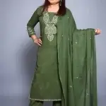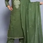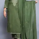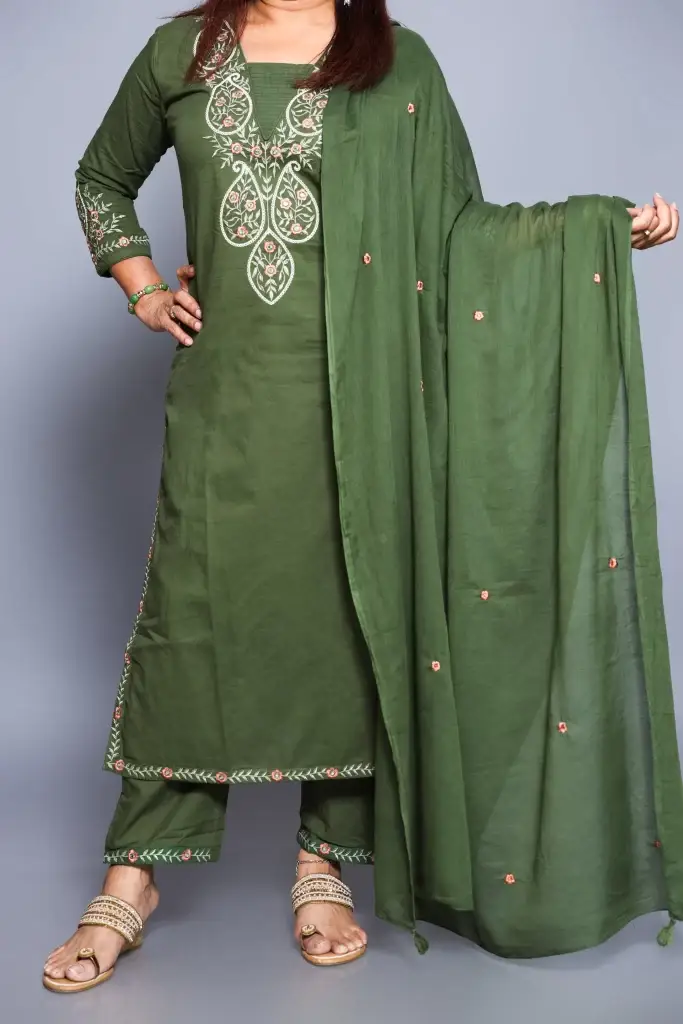 Olive Green Mul Cotton Embroidered Suit Set