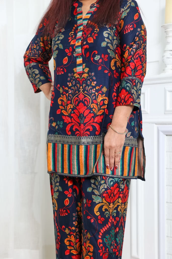(20% OFF)Blue printed Coord Set in cotton mix fabric. Perfect for casual lunch / dinner and office wear